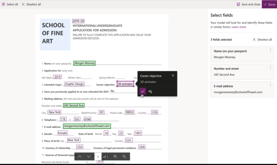 Para las empresas al contar con una licencia especial en Power Apps pueden tener esta tecnología a sus manos y un ejemplo de ello es poder identificar en una factura los campos principales y registrarlo en otro sistema como se puede apreciar en la imagen del lado derecho, con esto las empresas se ahorran tiempo de trabajo en digitar documentos.